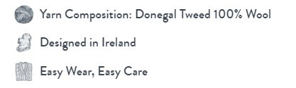 - Materiaal: Donegal Tweed 100% wol