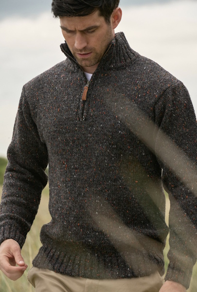 This sweater is made of 100% Donegal wool, spun in the famous Donegal Yarns Spinning Mill in Kilcarra, County Donegal. The wool is uniquely mottled, which ensures an authentic and robust look.